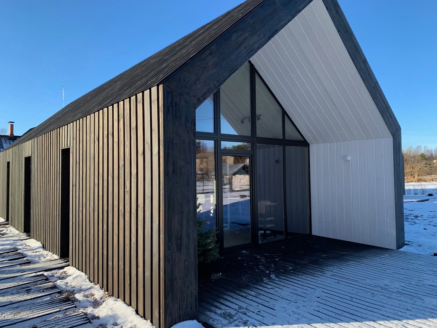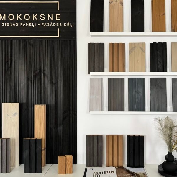 Home / GALLERY Finished projects Thermally modified wood cladding | F-9 | Natural/F + F-3 | Graphit/F Thermally modified wood cladding | F-9 | Natural/F Thermally modified pine cladding and decking | Virši Thermally modified wood cladding | SHP | Stained Showroom in Riga Thermally modified wood cladding | F-9 | Graphit/ F Thermally modified wood decking | T-2 | Natural/ T Thermally modified wood cladding | F-3 | Natural/F Thermally modified wood cladding | F3 | Not – stained Thermally modified wood pine facade | F-3 | Stained Thermally modified wood pine – Fire class B-S1,d0 Thermally modified wood | F-3 | Smooth board | Stained 3D Visualisations Thermally modified wood sauna stool Thermally modified wood steps | SHP | Not-stained Thermally modified wood pine decking | T-5 | Stained Thermally modified wood cladding | F-3 | Smooth board | Black Coal/F Thermally modified wood | F-9 | Brushed | Natural/F Thermally modified wood solution for exterior applications Thermally modified wood | F-1 | 19×140 | Brushed 4x | IVORY/F Thermally modified wood garden benches Thermally modified wood pine facade | F3 profile | Stained Thermally modified wood decking and garden furniture Thermally modified wood facade | F-9 | Brushed | GRAPHIT/F Thermally modified wood pine terrace | Black Coal/ T Thermally modified wood pine facade + CNC | F-3 | Brushed | Natural/F Thermally modified wood pine facade | SHP | Stained Thermally modified wood pine facade solution for modular house with roof profile Thermally modified wood pine terrace | T-3 | Untinted Thermally modified wood pine | F9 | Brushed | Black Coal /F Thermally modified wood pine facade | F-3 | Untinted Thermally modified wood pine facade | F-9 | Natural/F Thermally modified wood outdoor furniture Thermally modified wood pine facade | F-3 | Stained Thermally modified wood pine terrace Thermally modified wood solution for yard landscaping